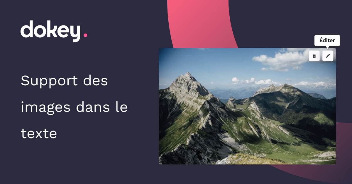 Dokey supporte à présent les images. Importez n’importe quel texte ou cliquez directement sur bouton d’ajout d’image.